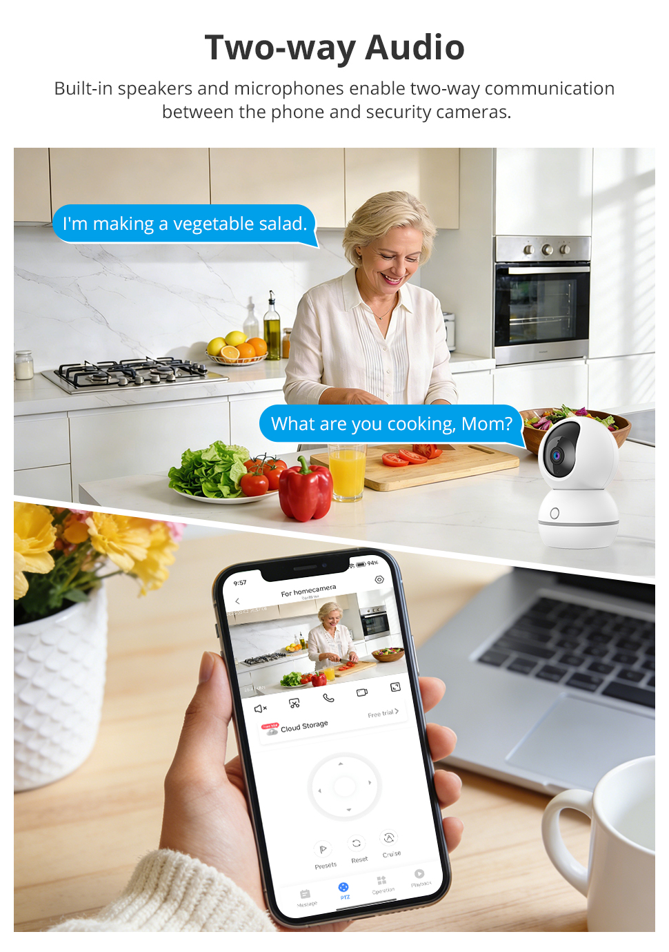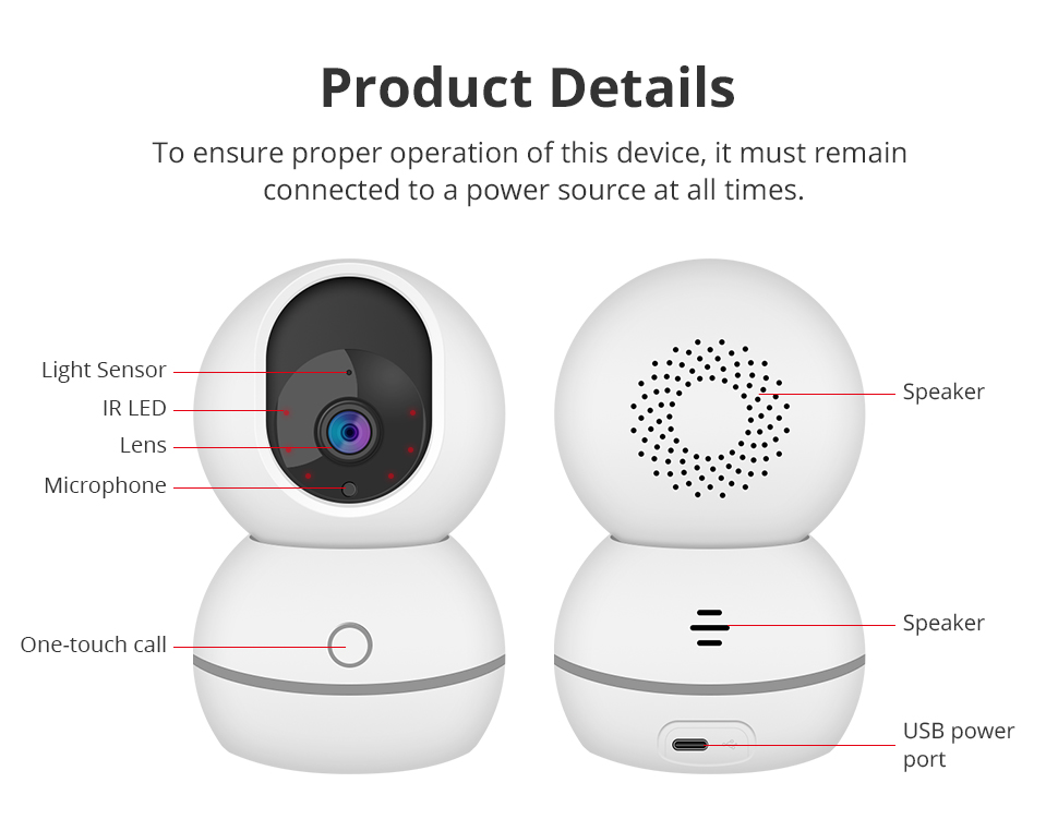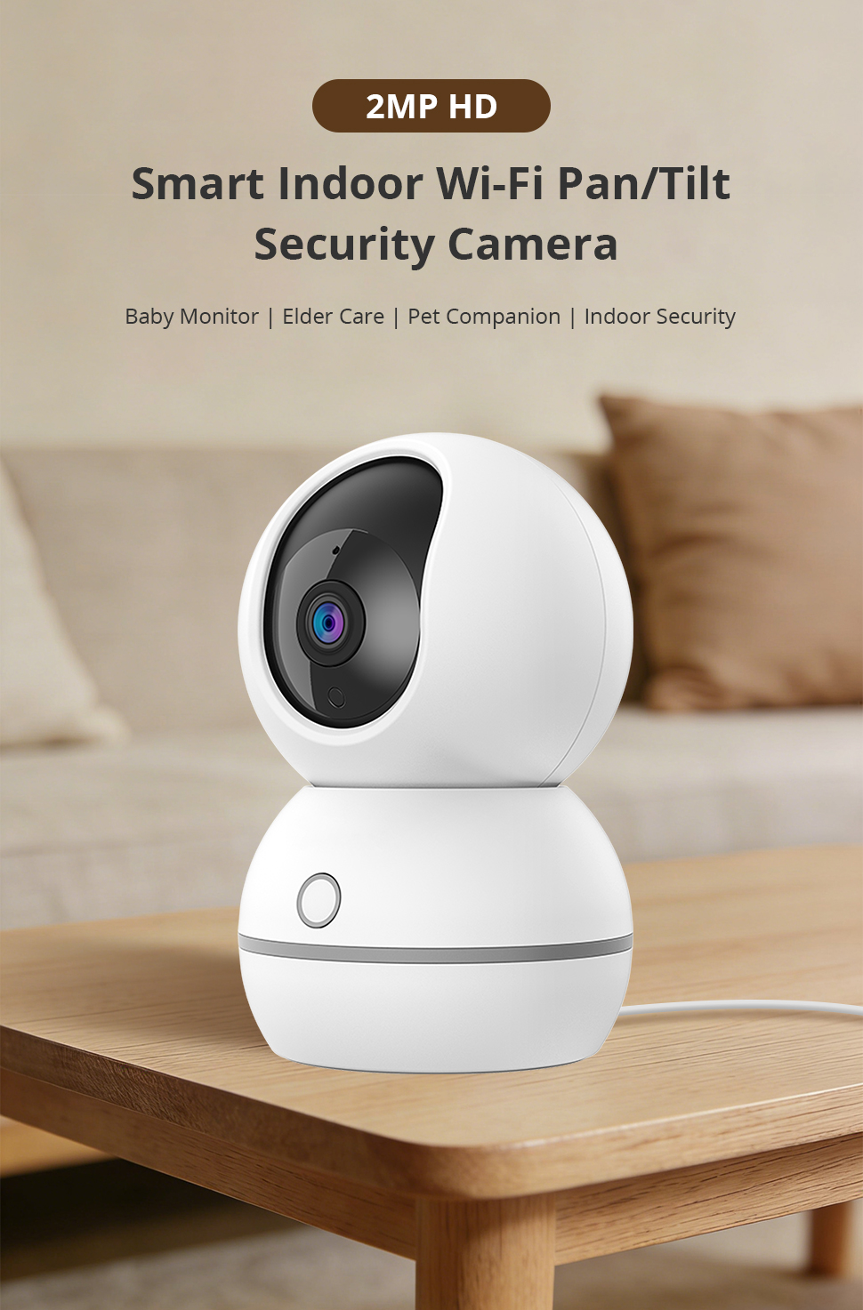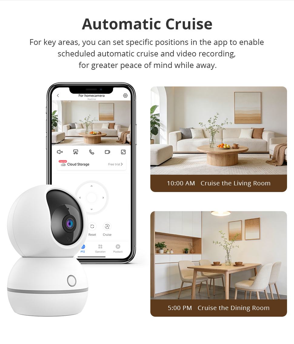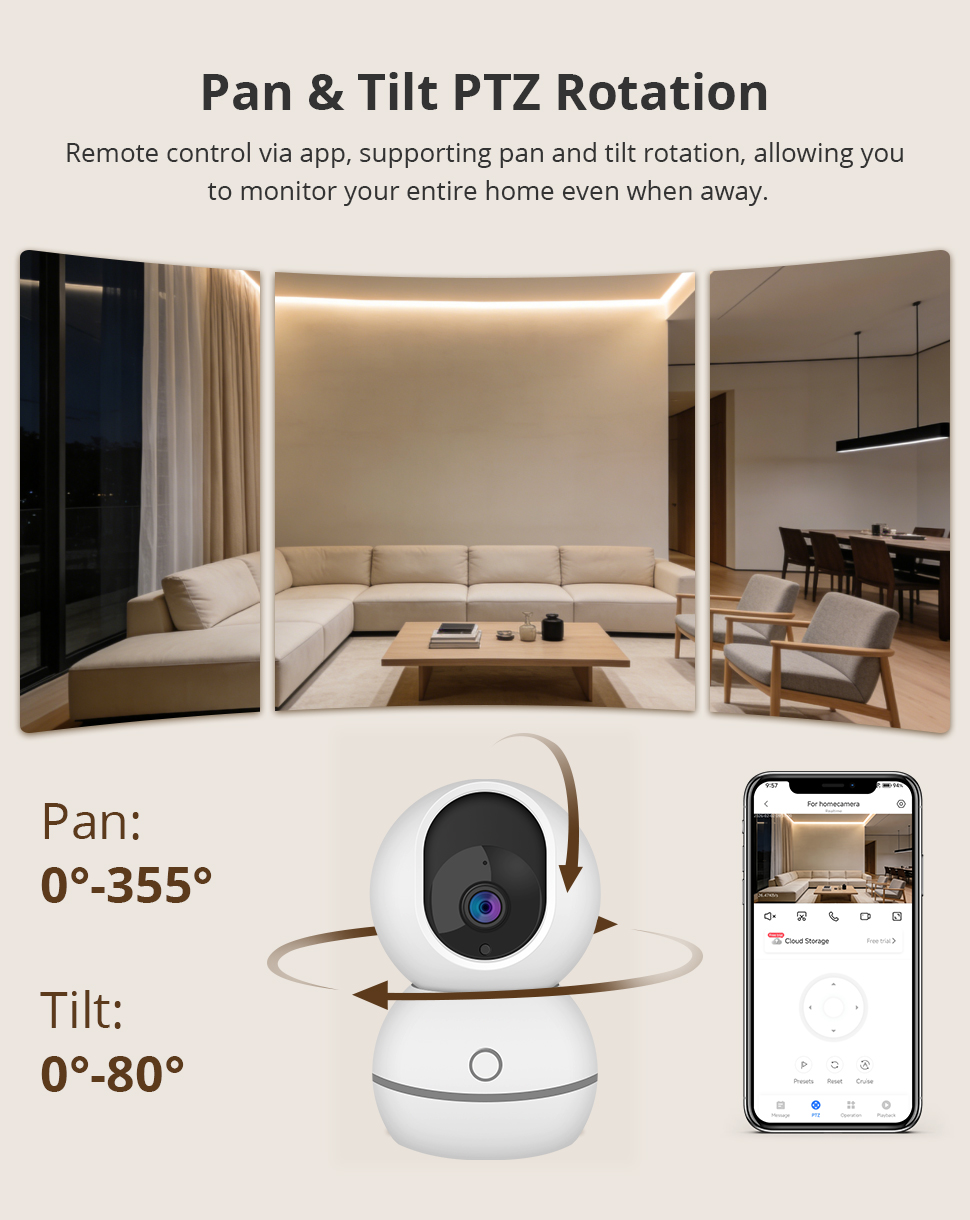 Zemismart Wifi Smart Indoor Pan/Tilt Security Camera 2MP HD 355° Pan 80° Tilt Smart Tracking Camera with Night Vision Two-Way Audio