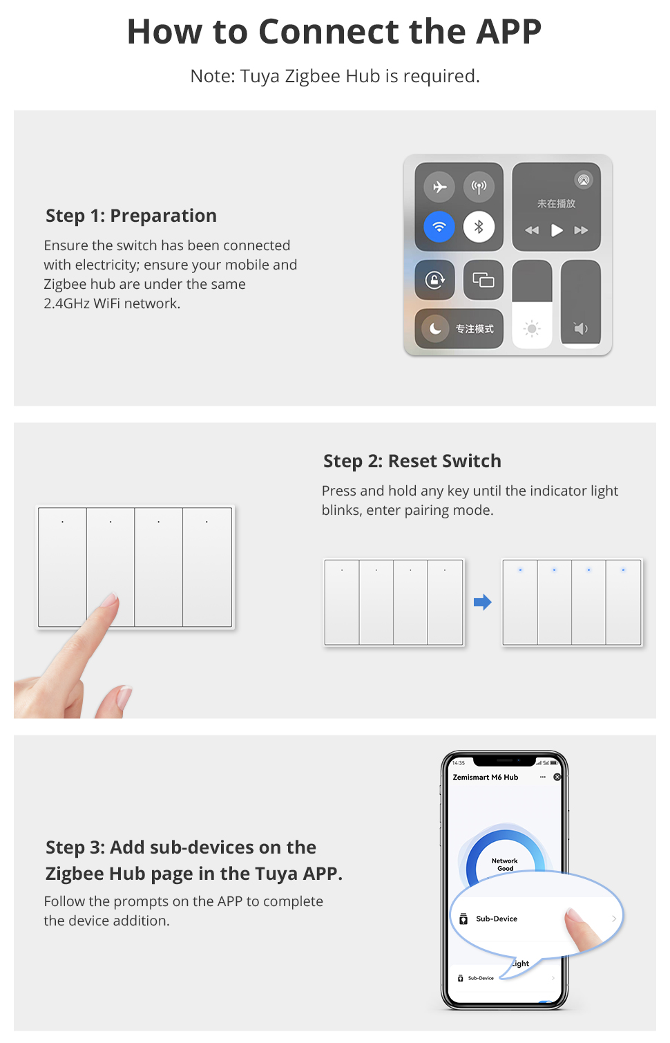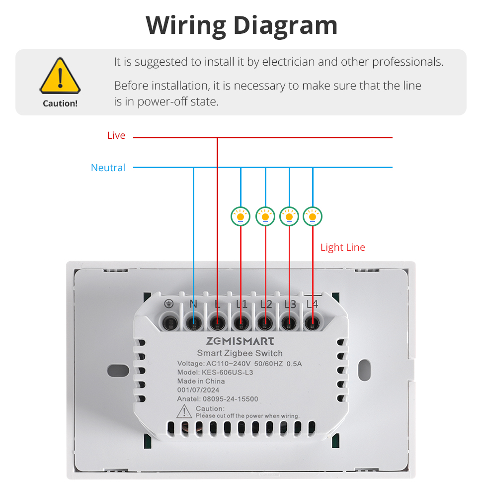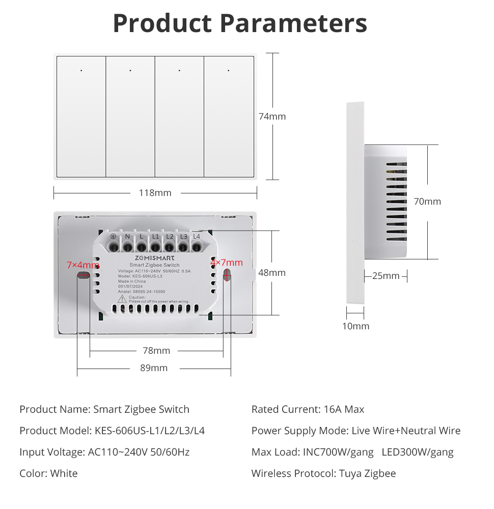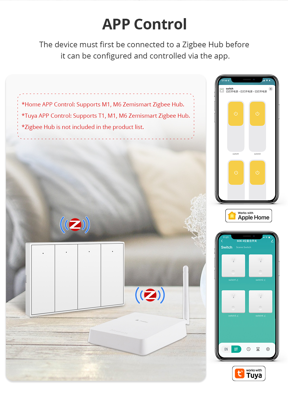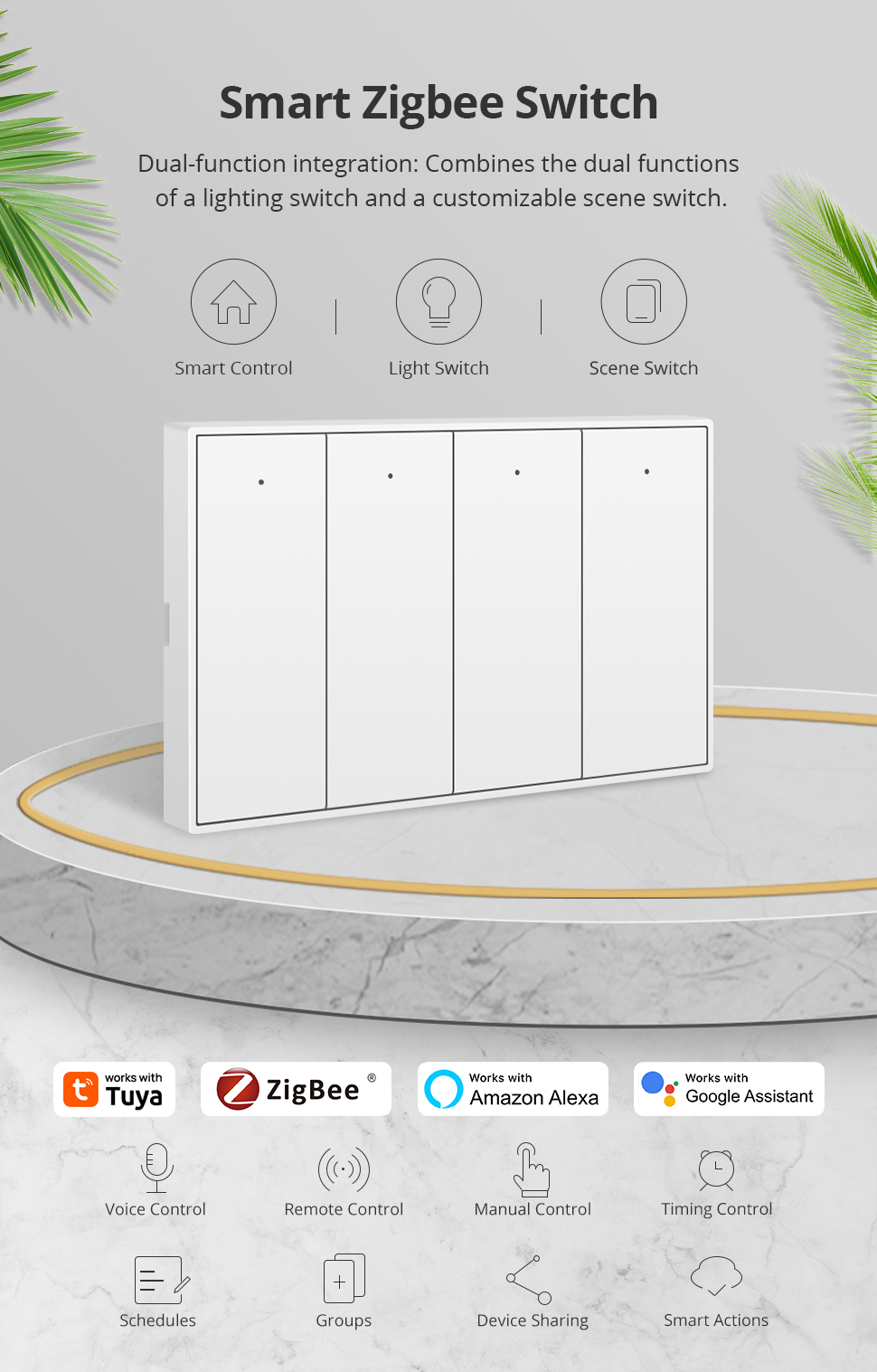Zemismart Tuya Zigbee Neutral Push Switch Wall Light Switches 1 2 3 4 Gangs White Black Interruptor Alexa Google Home Smartthings Control Anatel KC
