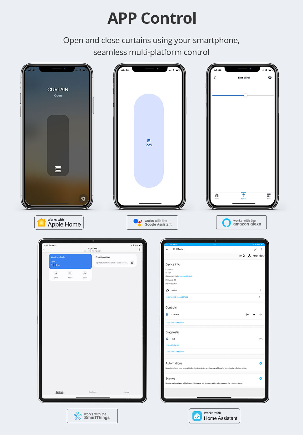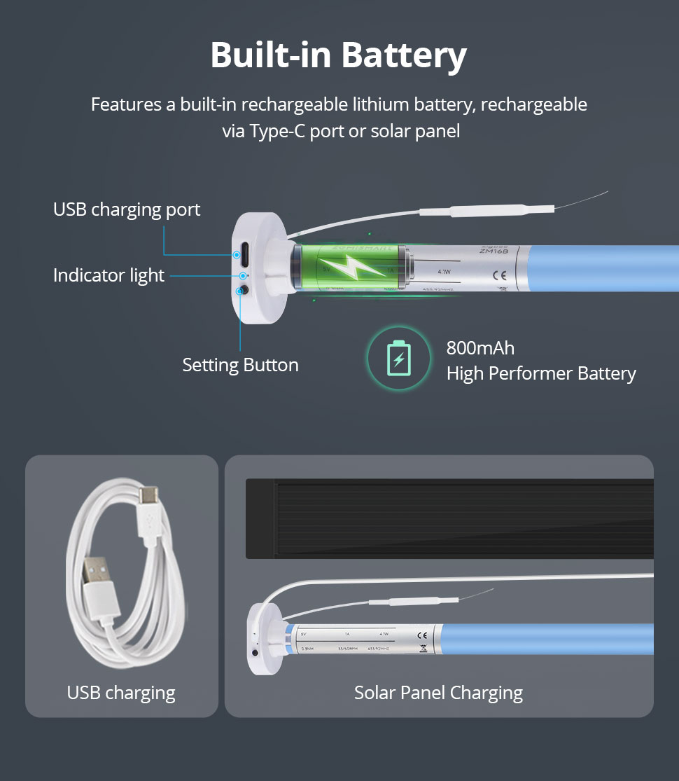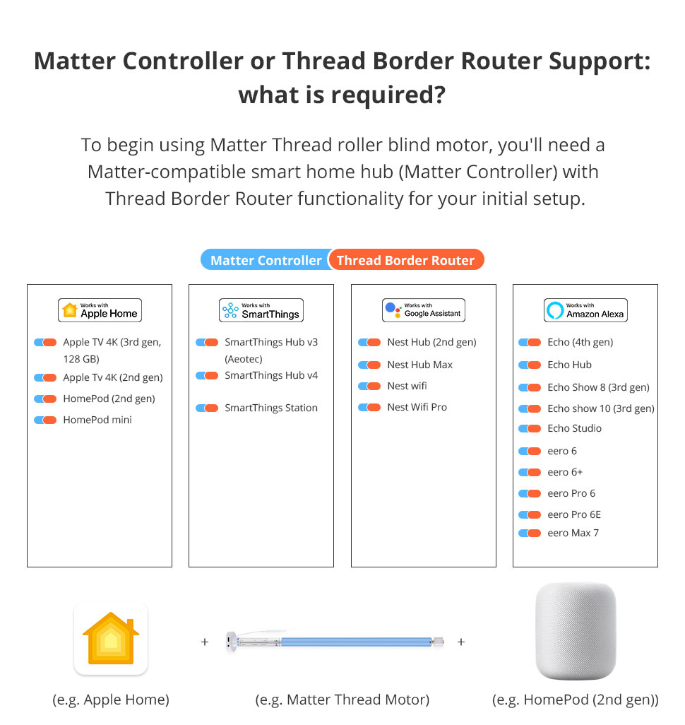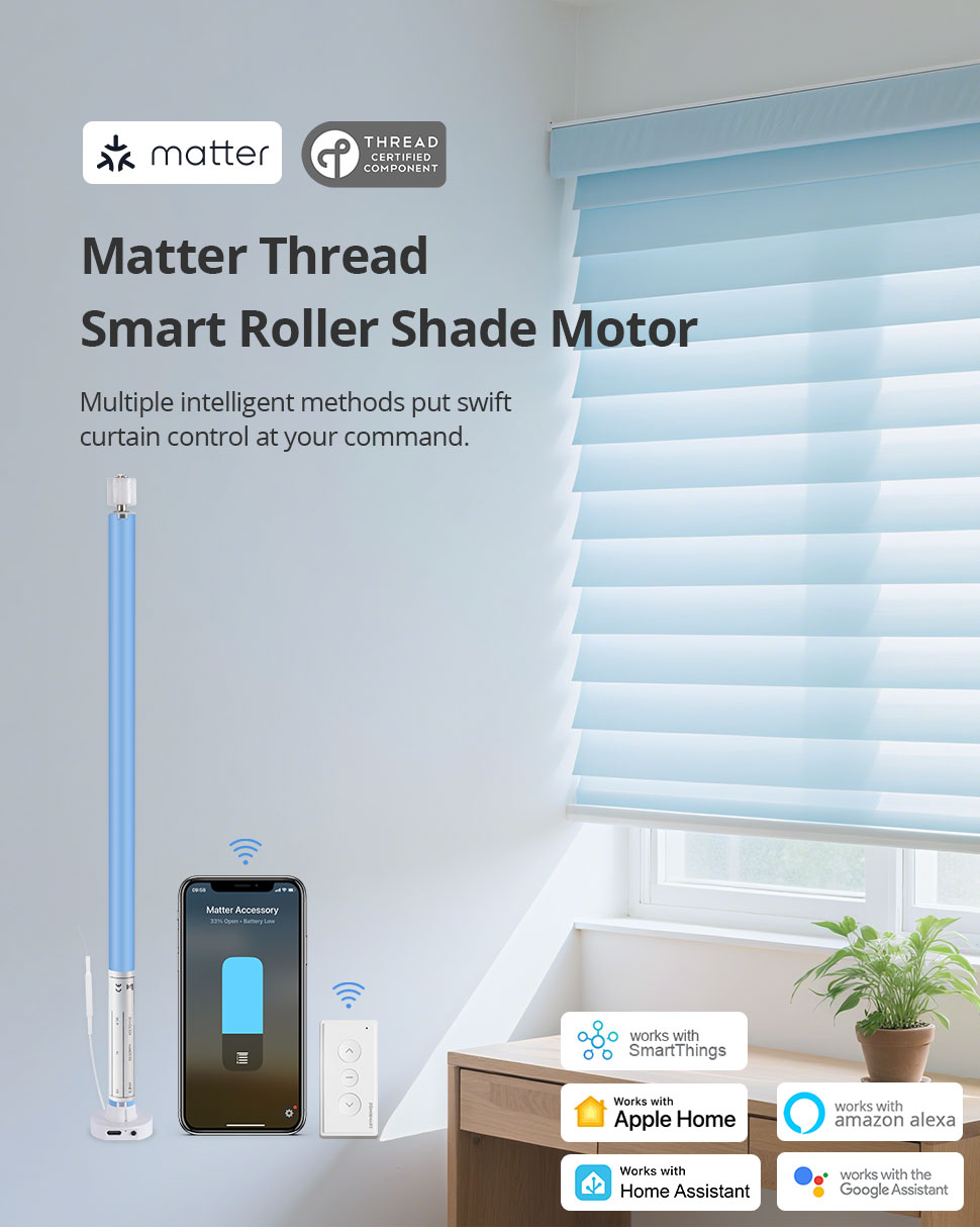 Zemismart Matter over Thread Rechargable Blind Motor compatible with 17/25/28mm Tubes HomeKit Google Home SmartThings App Siri Control
