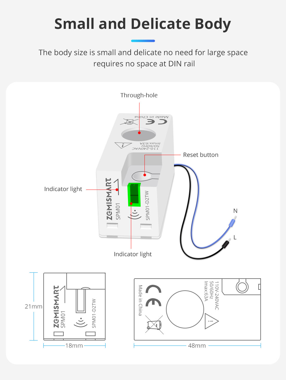 Zemismart WiFi Real-time Smart Energy Monitor Electric Energy Meter works with Tuya Smart Life App Home Assisstant 110V 240V