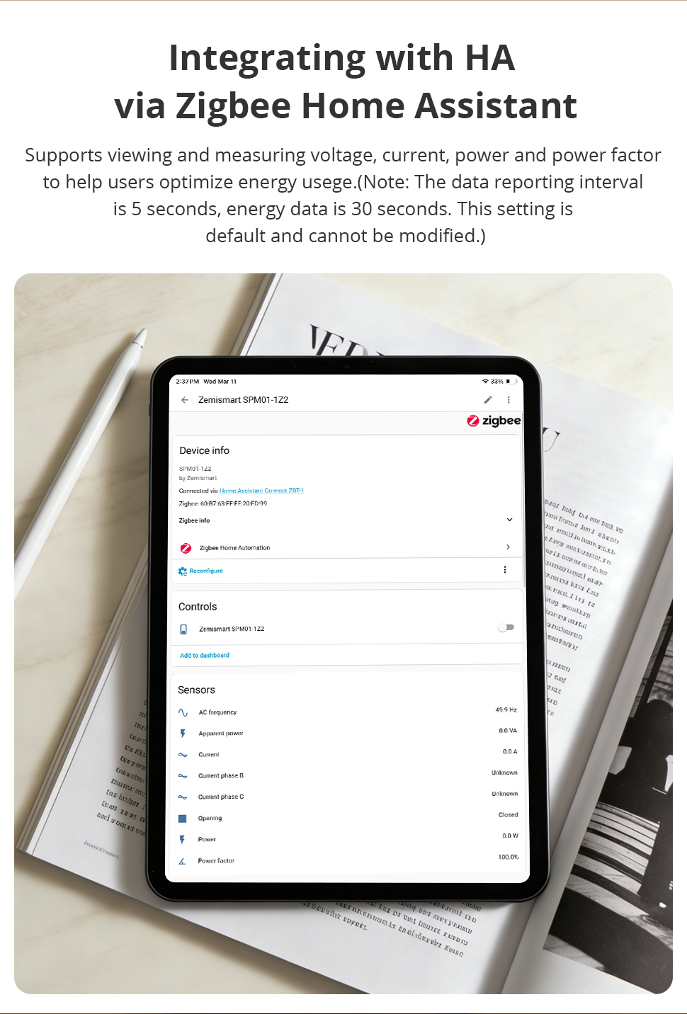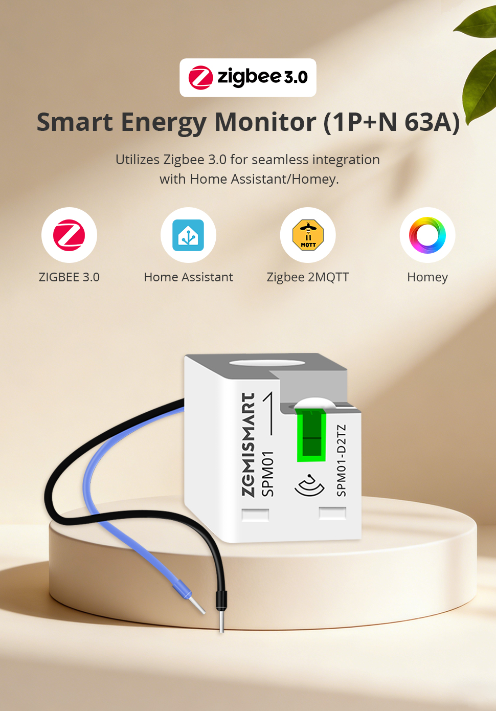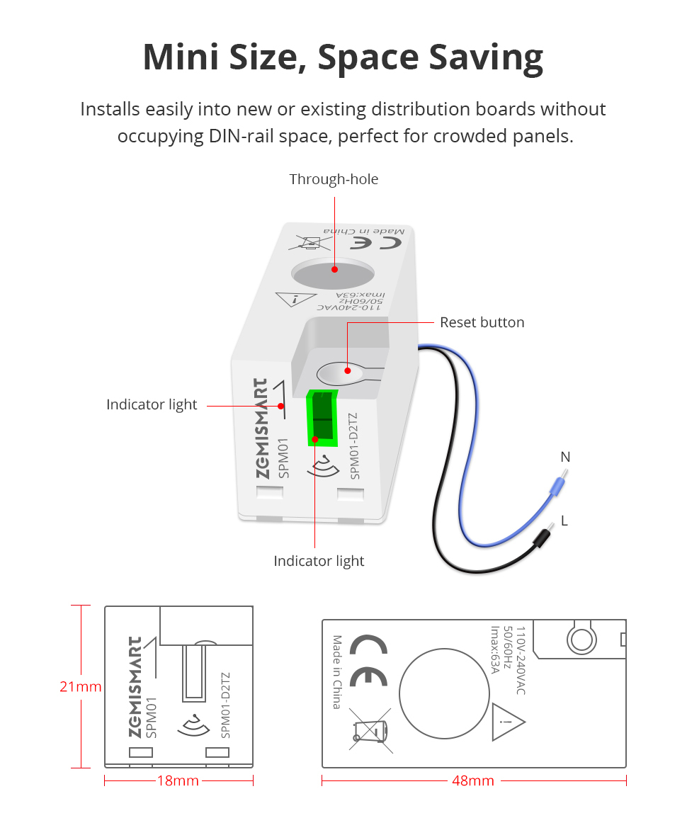 Zemismart Zigbee 3.0 1 Phrase Smart Energy Monitor Real-time Electric Energy Meter works with Home Assisstant 110V 240V