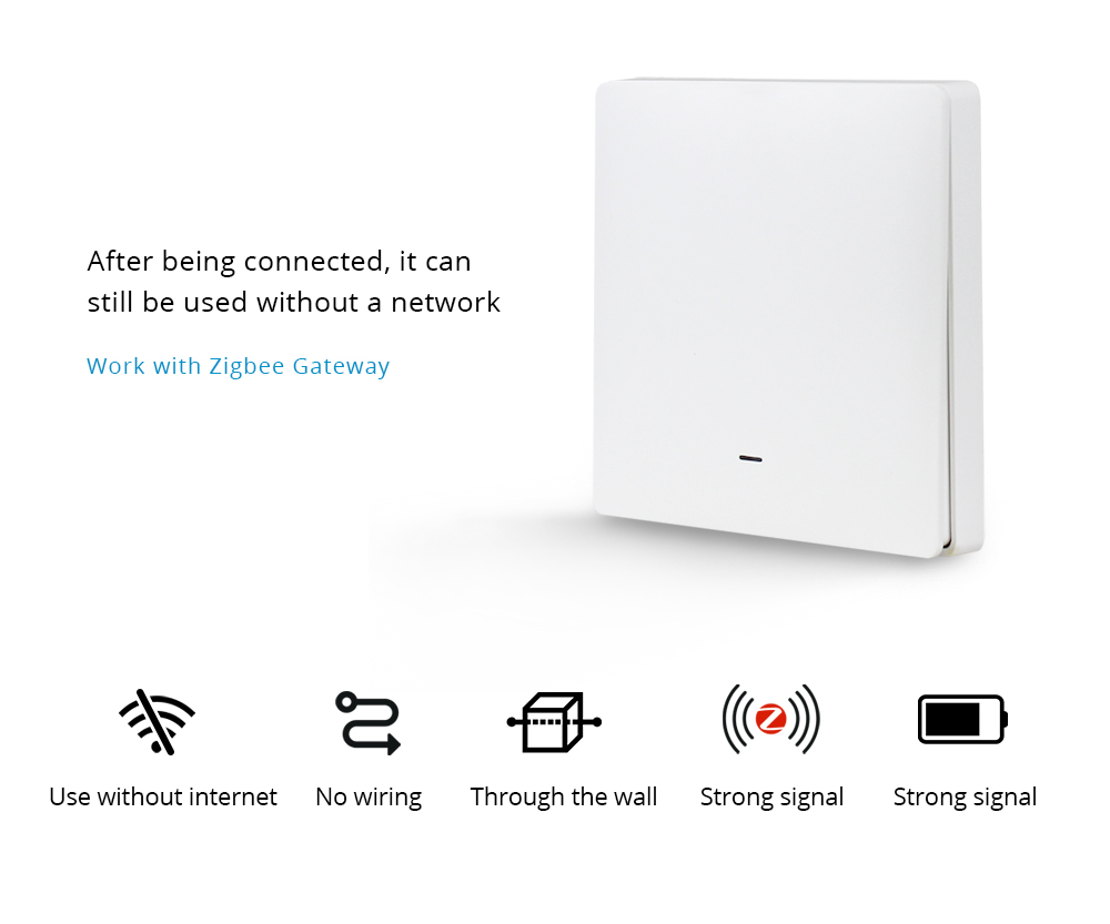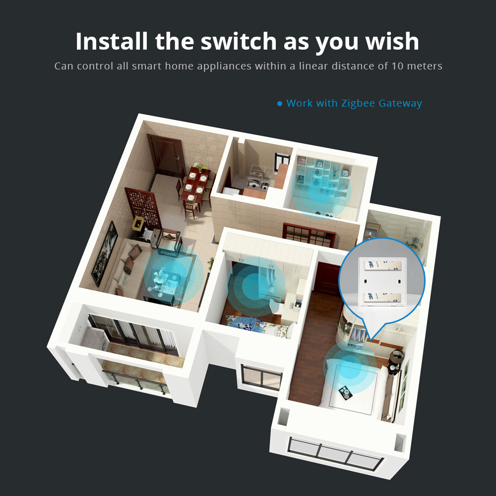 Zemismart Tuya Zigbee Wireless Switch Battery Wall Remote with Push Button Smart Life Alexa Google Home Control