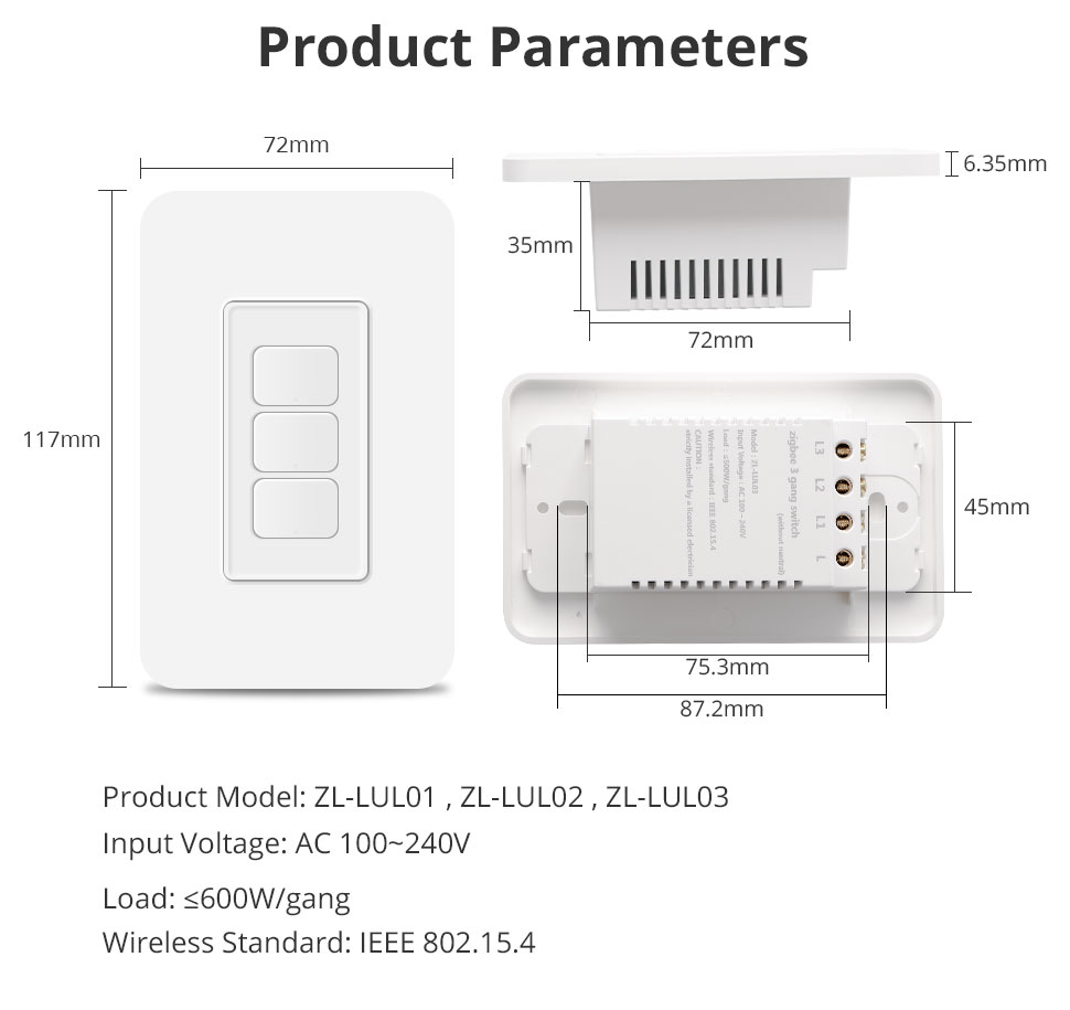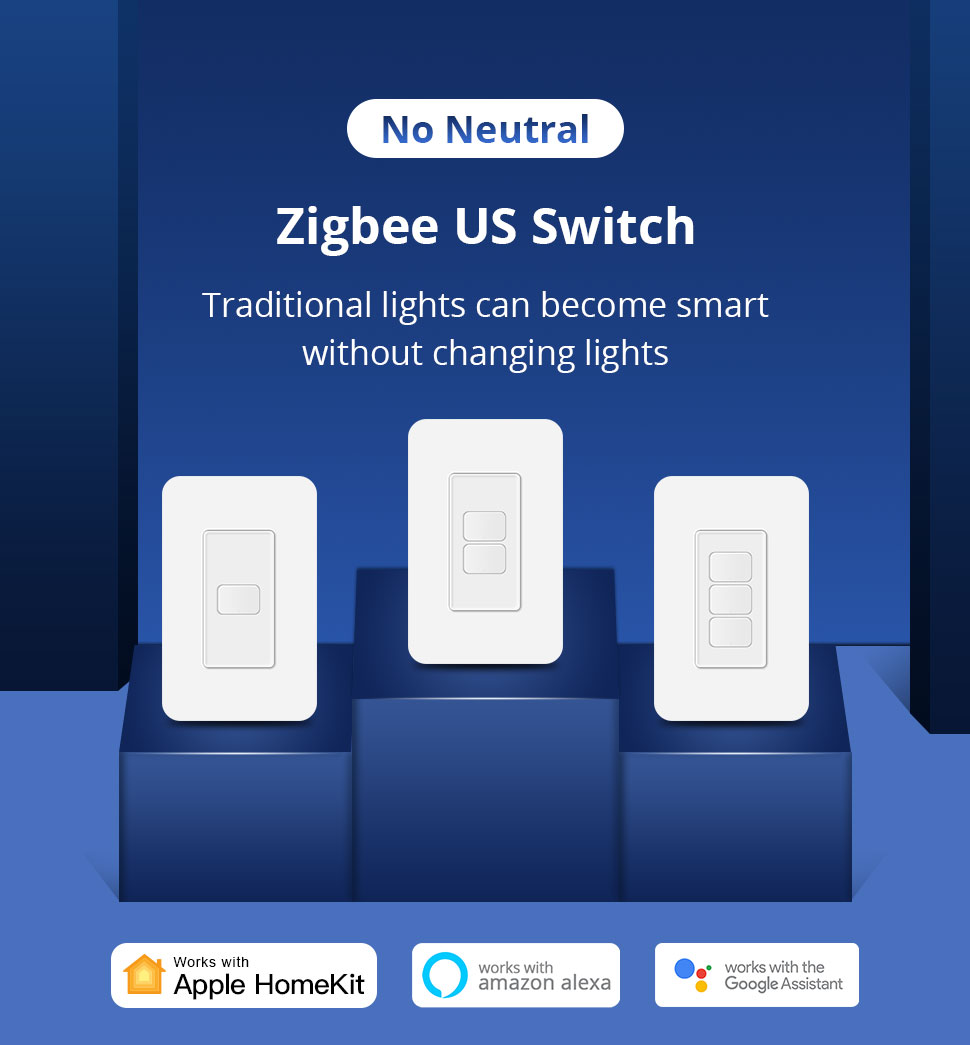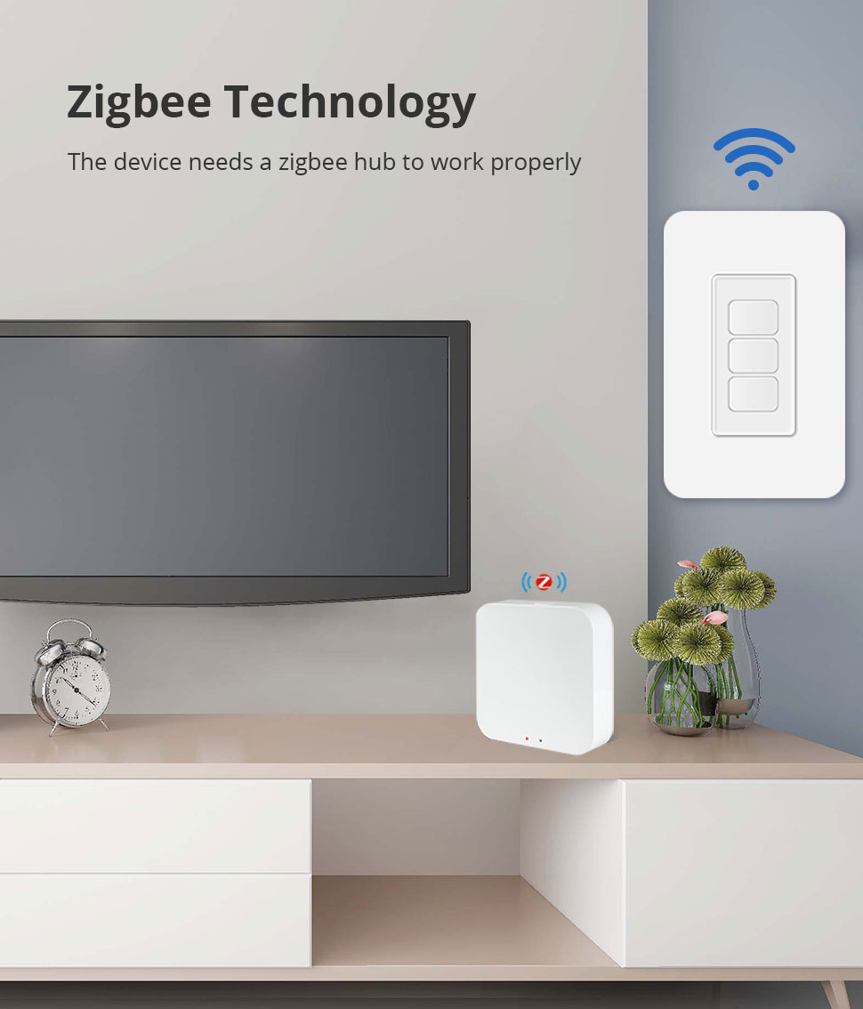 Zemismart Zigbee No Neutral Wall Light Switch 1 2 3 Gang works with Tuya Alexa Google Home US Interrupter Support HomeKit via ZMHK-01 Hub