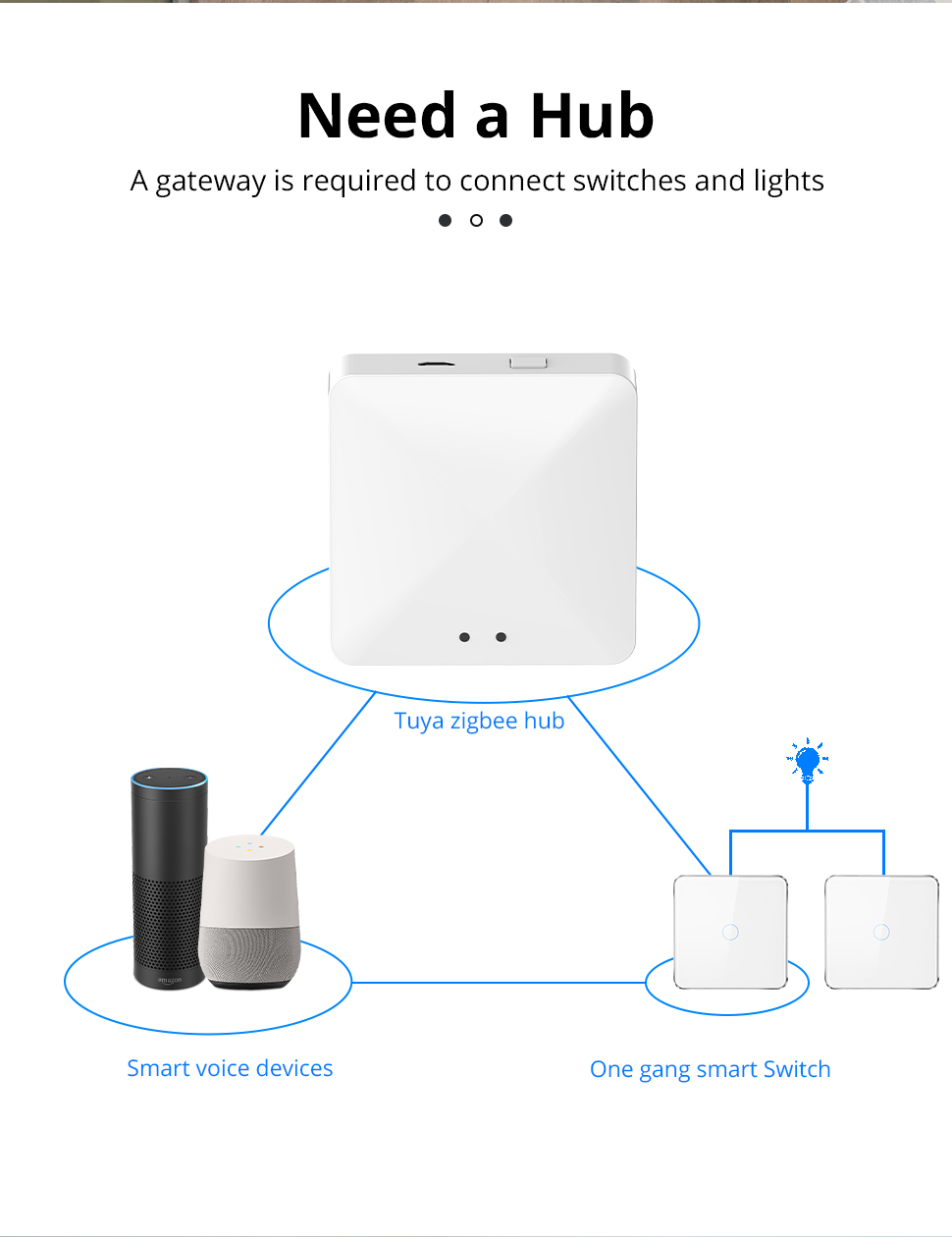 Zemismart Zigbee 3 Way One Gang No Neutral Touch Switch work with Tuya HomeKit Wall Light Interruptor Smart Life Alexa Google Home Voice Control