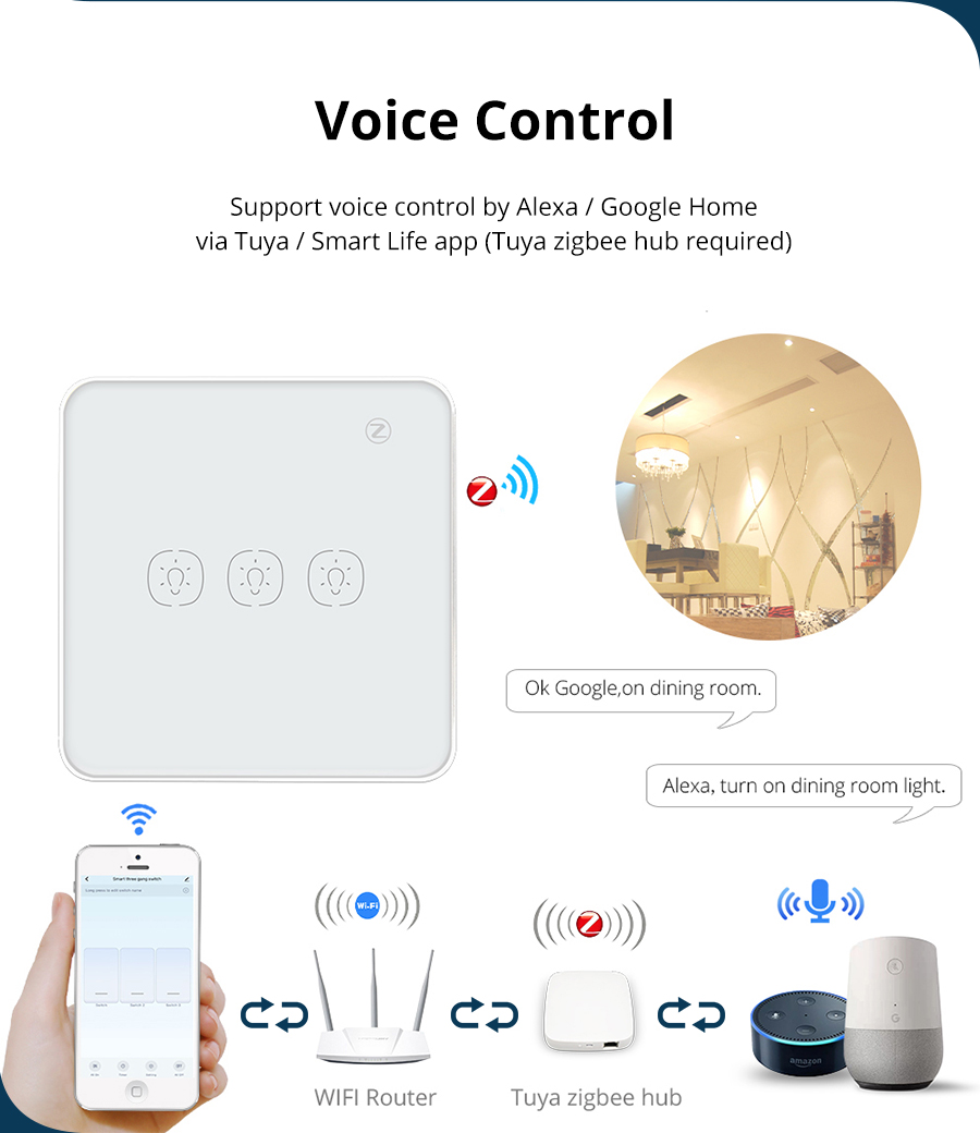 Zemismart Zigbee Neutral Required Light Switch with Aluminum Frame Glass Touch Switch works with Tuya Alexa Echo Google Home Assistant Control